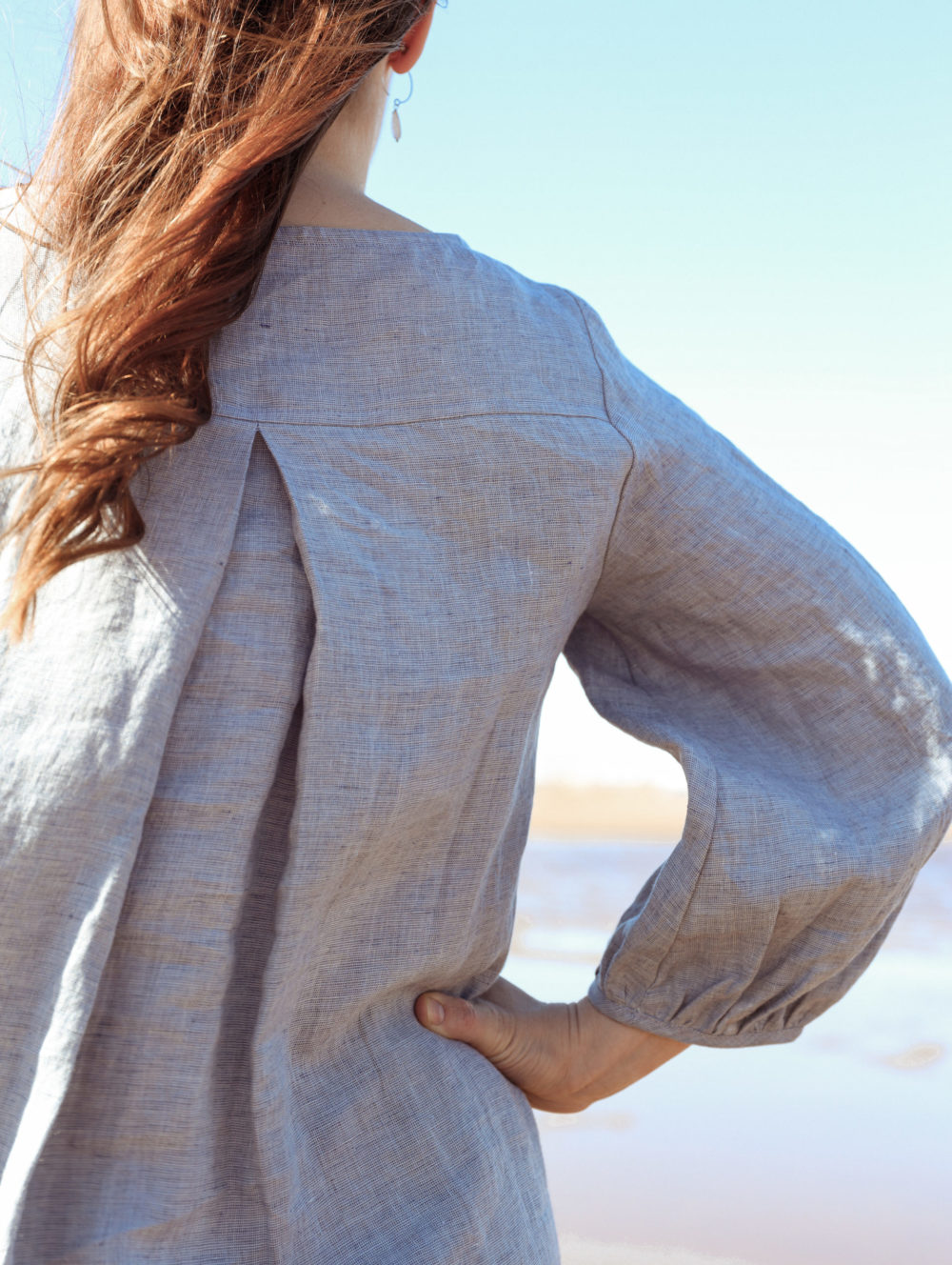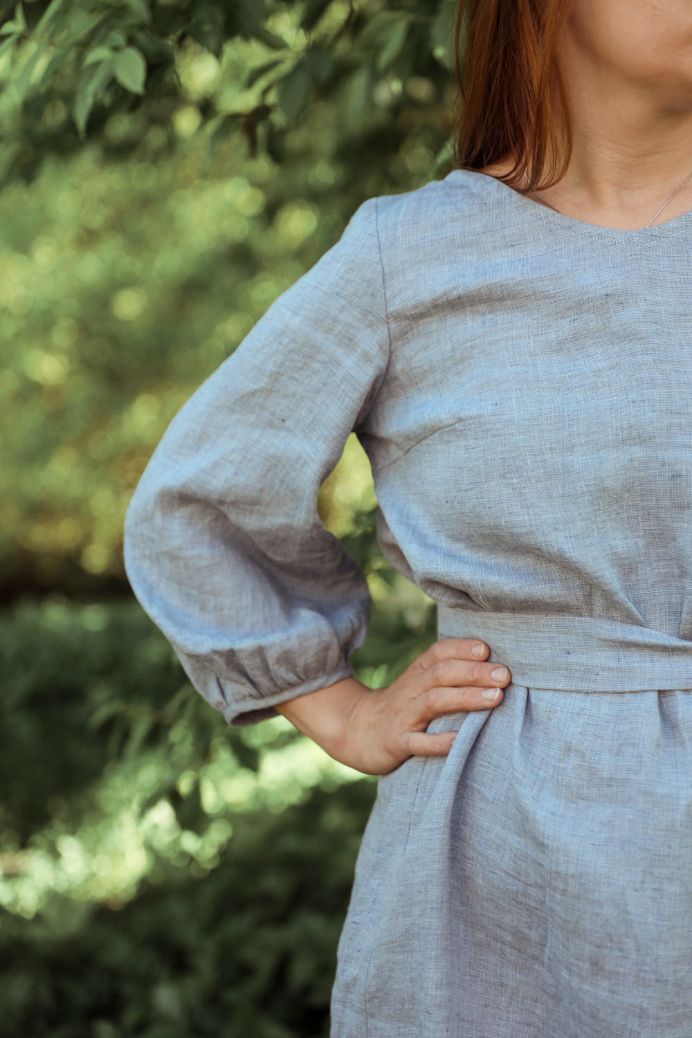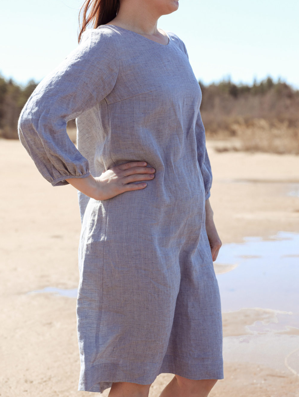 Tuuli-mekko on luottovaate keväästä syksyyn. ¾-pituiset hihat suojaavat sekä auringon paahteelta että tuulelta. Väljä mekko ei hiosta helteellä ja viileämmällä ilmalla alle mahtuu lisää kerroksia. Mukana tulee samasta materiaalista valmistettu vyö.